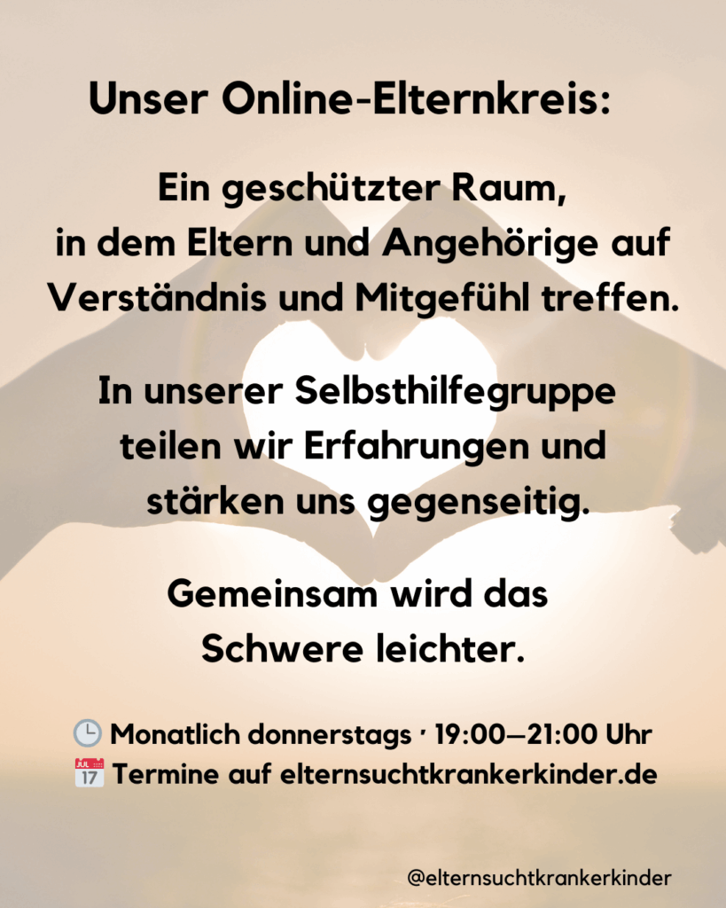 - Eltern eines suchterkrankten Kindes zu sein, bedeutet nicht nur Schmerz, sondern auch Hinschauen, Entwicklung und Lernen. Dafür sind wir dankbar.
